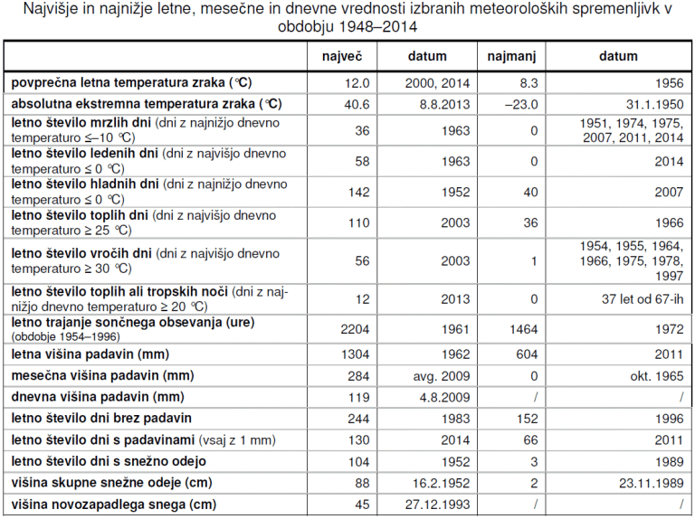 Najtopleje je bilo v večjem delu Slovenije leta 2014, ki je od dolgoletnega povprečja odstopalo za skoraj dve stopinji Celzija. S stališča podnebnih razmer je bilo to leto zagotovo »najbolj nenavadno leto«, pravi klimatolog Vetračnik. Bilo je najbolj toplo, hkrati pa tudi izredno namočeno. Marsikje po Sloveniji je bilo najbolj namočeno v zadnjih 50 letih. Zimo v letu 2014 si bomo zapomnili tudi po žledolomu.