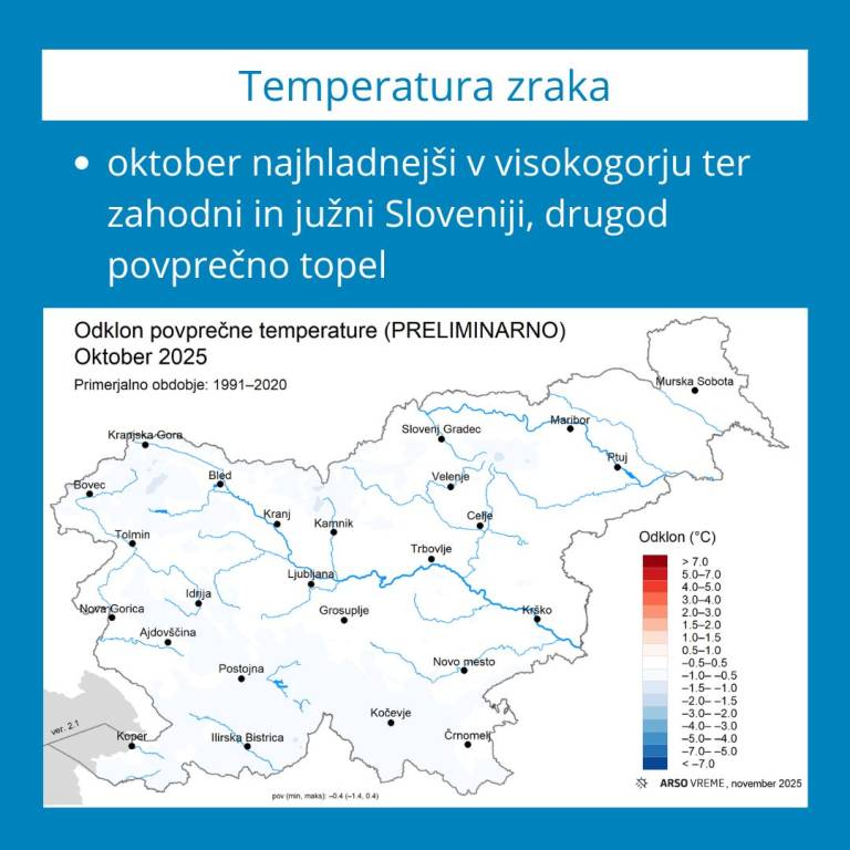 Glede na temperaturni razpon primerjalnega obdobja 1991–2020 se oktober 2025 uvršča med »normalno tople« mesece.