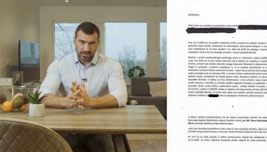 »Verjamem in vem, da se zavedate, koliko sledilcev imate na svojem odprtem profilu Facebook strani, torej ste se posledično zavedali oziroma bi se vsaj morali zavedati, kakšen odmev bo imelo protipravno objavljeno pismo ter nato še objavljena vsebina video posnetka v slovenski javnosti,« piše med drugim v opominu pred tožbo.