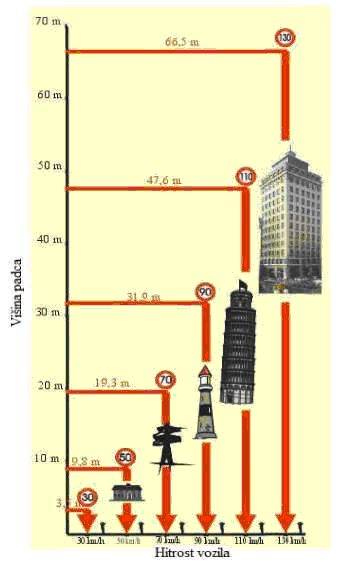 Udarec vozila na človeško telo pri hitrosti 50 kilometrov na uro je enak padcu z višine desetih metrov.