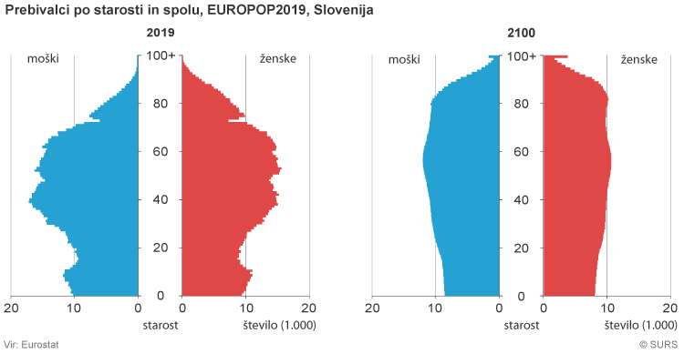 Projekcije EUROPOP2019, ki jih je Eurostat pripravil za vse države članice Evropske unije, Islandijo, Lihtenštajn, Norveško in Švico, Sloveniji napovedujejo, da bo 1. januarja 2100 v Sloveniji živelo le še nekaj več kot 1.888.000 prebivalcev oziroma 207.000 manj kot danes.