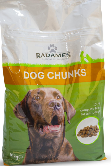 Odpoklic se nanaša na suho hrano za pse, kroketi za pse oziroma Dog chunks, blagovne znamke RADAMES. Izdelek je pakiran v plastično potiskano vrečo z neto količino deset kilogramov. Oznaka serije oziroma lota je 5286, rok uporabnosti pa je označen z datumom uporabno najmanj do 13. aprila 2027.