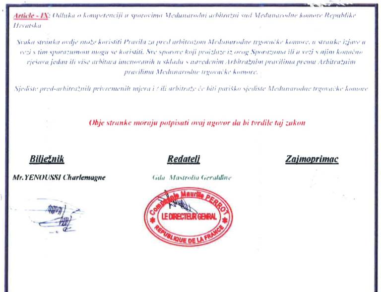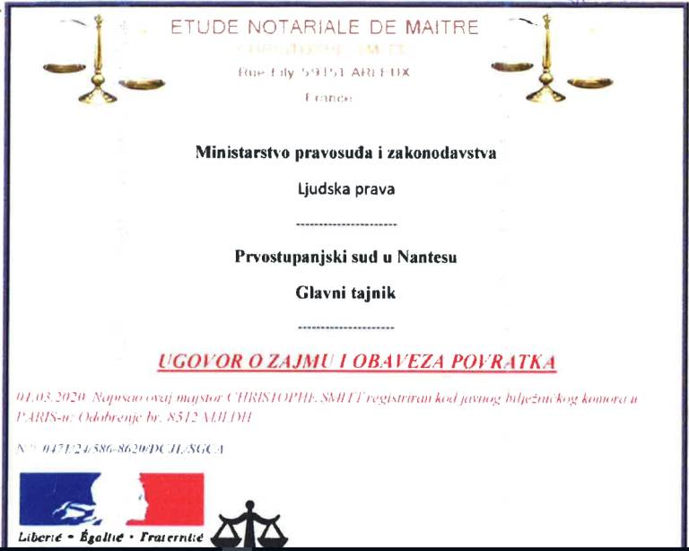 Oškodovanci dobijo na elektronski naslov notarsko overjeno kreditno pogodbo, ki pa je lažna. Primer lažne pogodbe si lahko ogledate spodaj.