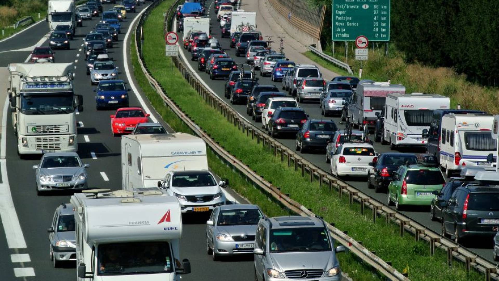 Za izstop iz Slovenije pa osebna vozila do pol ure čakajo na mejnih prehodih Sečovlje in Dragonja, do ene ure pa na prehodu Jelšane.