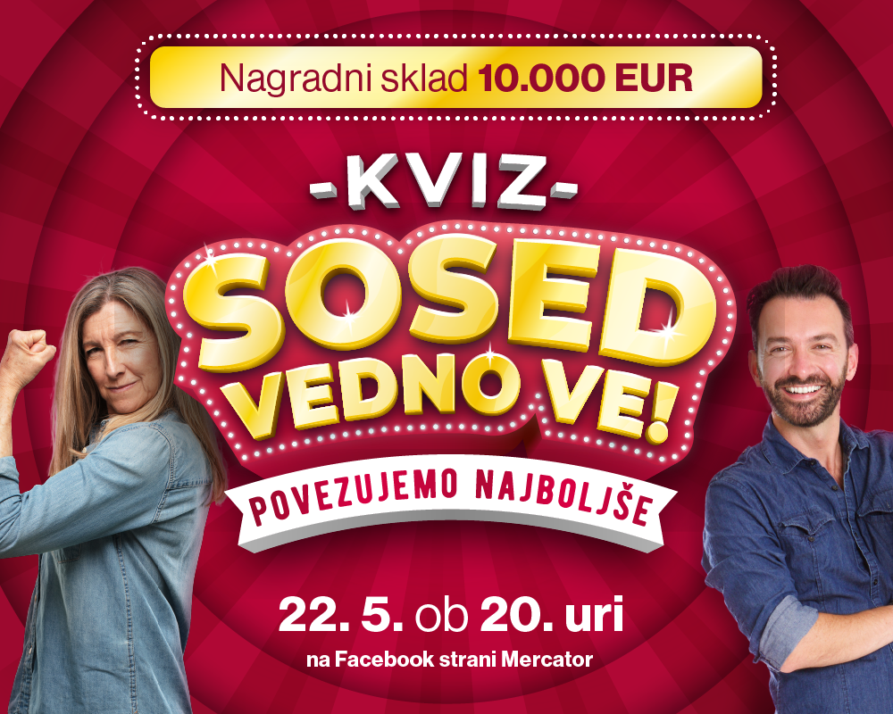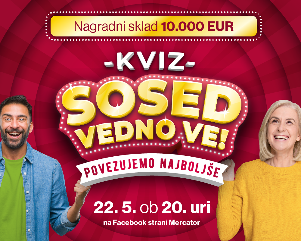 • 22. maja 2021 ob 20. uri sodelovati v kvizu na Facebook profilu Mercator