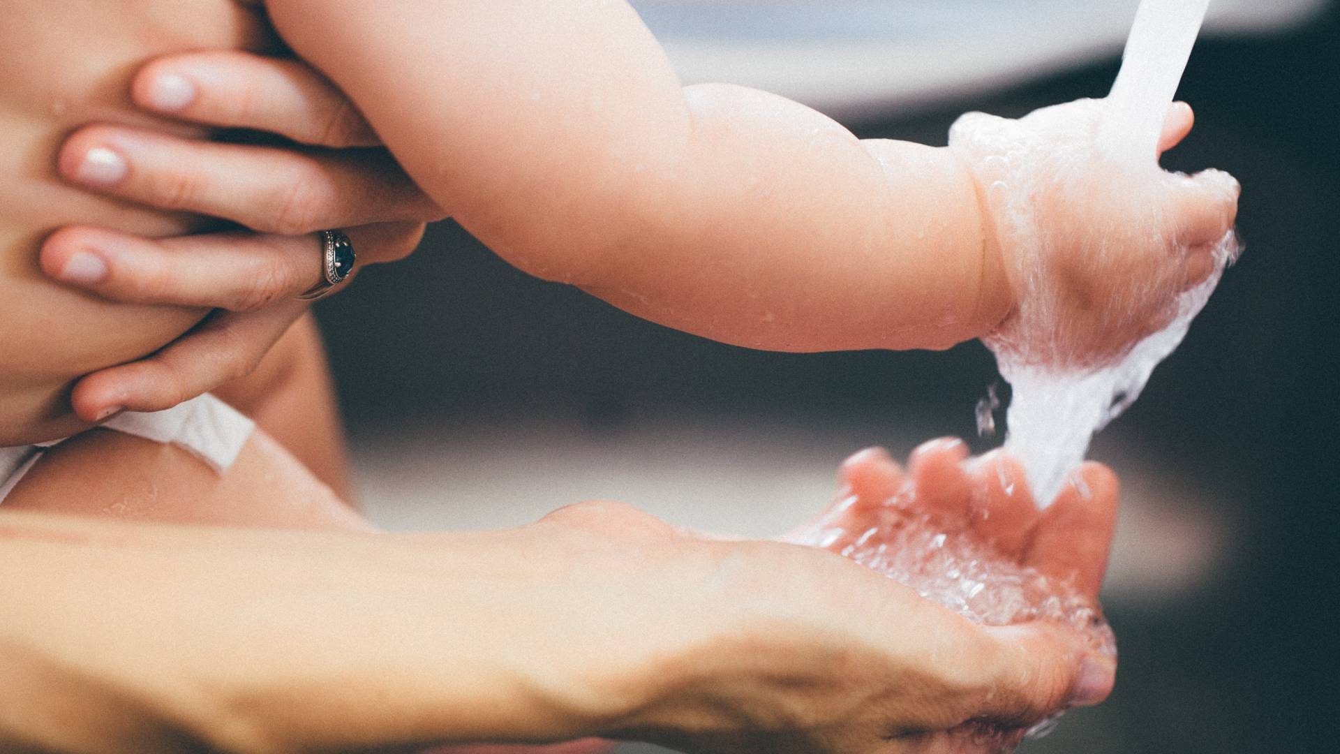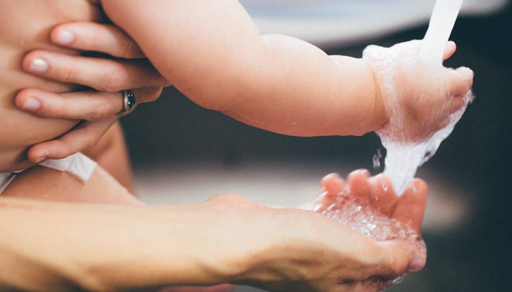 - Roke si umivamo s tekočim milom in vodo vsaj 20 sekund ali toliko časa, da si otroci zapojejo »Vse najboljše za te« v zmernem ritmu.
