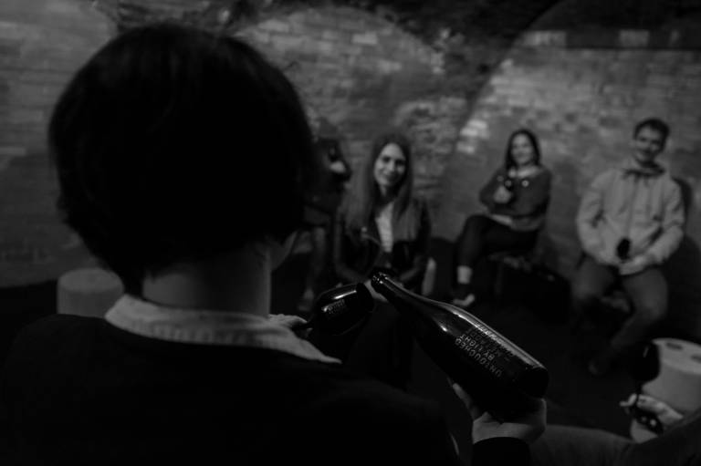 Prav ta degustacija ima poseben vpliv na goste, saj poteka v popolni odsotnosti svetlobe v objemu naše kleti Pod skalo; na koncu se gostje strinjajo z našim motom, da se najlepše stvari dogajajo v temi,« doživetje in njegove posebnosti povzema Martina Ficko.