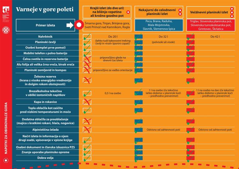 V gore se vedno podamo z nahrbtnikom. V njem naj ne bo samo malica in litri tekočine, ki jo od poletne vročine v večini primerov pri koči postavimo na mizo vso sparjeno.