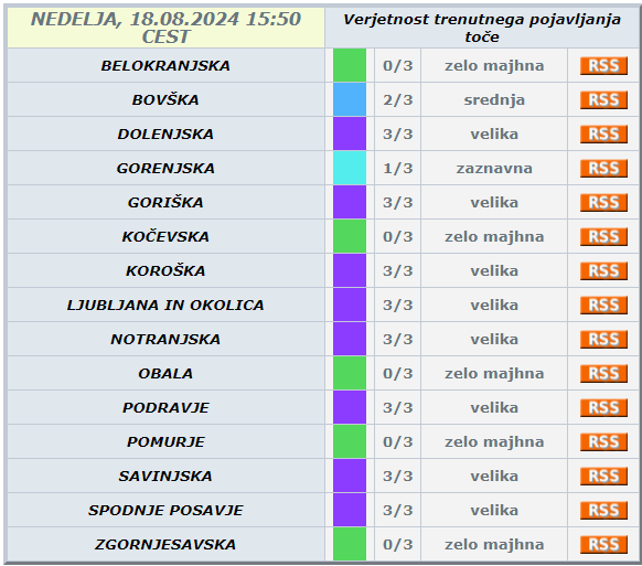 Agencija za okolje je prižgala vijolično opozorilo zaradi verjetnosti pojavljanja toče.