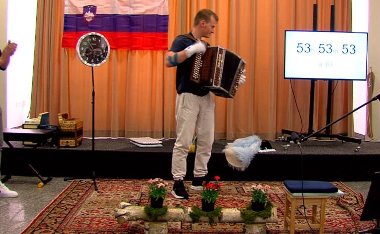 Anže Krevh je postavil nov Guinnessov rekord v neprekinjenem igranju harmonike.