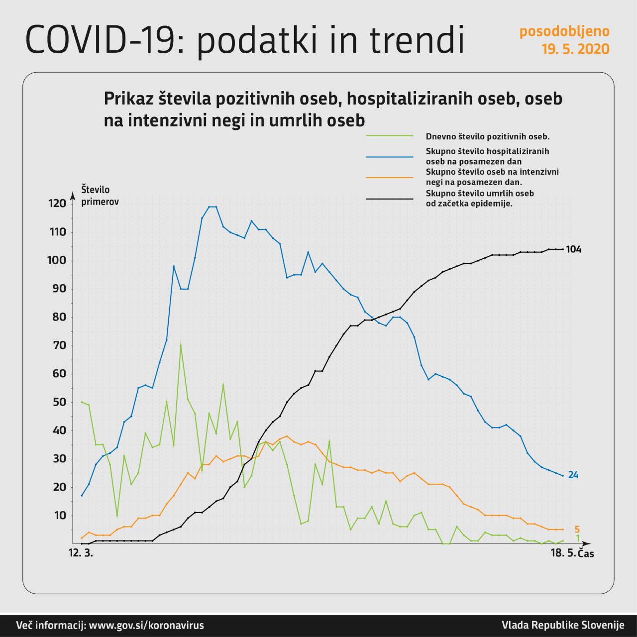 Dan je minil brez novih smrtnih žrtev zaradi covid-19. Skupno število umrlih zaradi covid-19 v Sloveniji ostaja pri 104 smrtnih žrtvah.