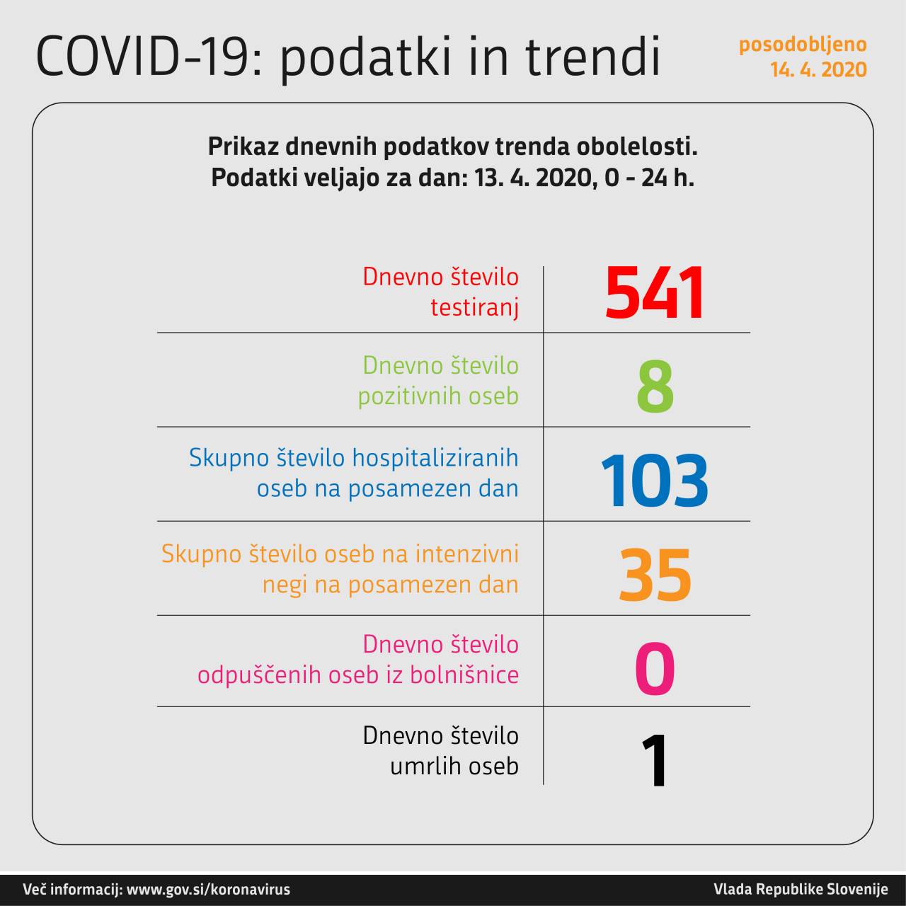 Znova smo zaradi epidemije covid-19 zabeležili tudi eno smrtno žrtev.