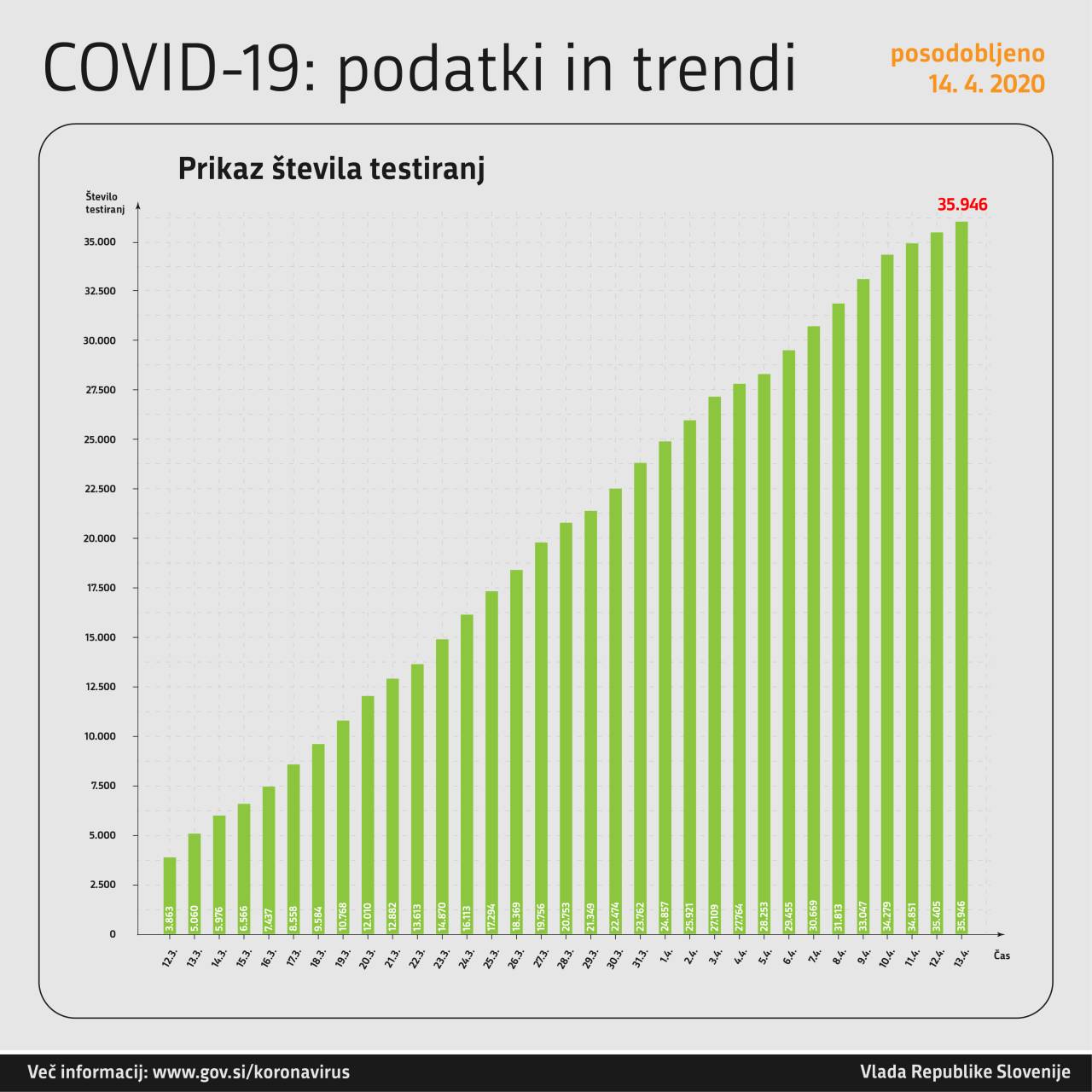 Po podatkih vladne spletne strani za spremljanje epidemije covid-19 je bilo 13. aprila do polnoči testiranih 541 ljudi, od tega jih je bilo osem pozitivnih na novi koronavirus.