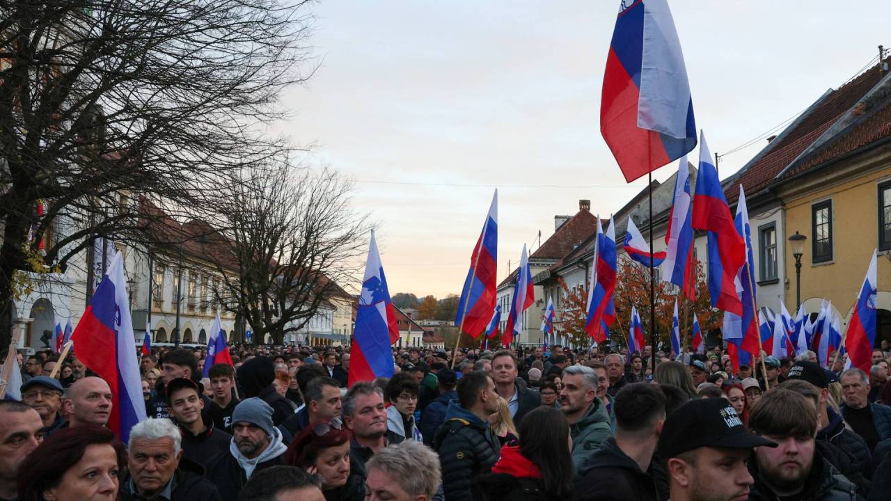 Na Glavnem trgu v Novem mestu občani spremljajo prenos izredne seje občinskega sveta. Župan Gregor Macedoni poudarja pomen dialoga in sodelovanja z državo pri razvoju mesta.