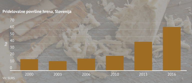 Slovenija veliko več hrena uvozi kot izvozi. Lani smo ga v Slovenijo uvozili 40,2 tone, izvozili pa 13,6 tone.