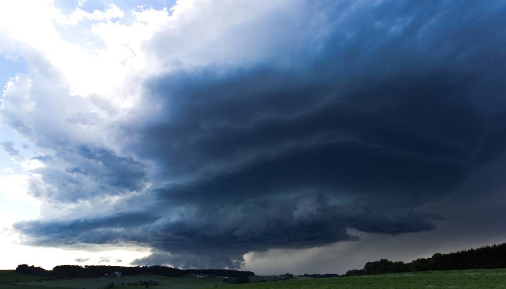 Nad Italijo se je krepila obsežna nevihtna celica, ki je že dosegla Slovenijo. S seboj prinaša veter s hitrostjo več kot sto kilometrov na uro.