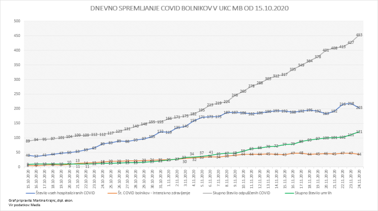 Od julija pa do danes so tako v Univerzitetnem kliničnem centru Maribor obravnavali 550 pacientov na navadnem covid oddelku, od teh je že več kot 400 bolnikov virus prebolelo, 61 bolnikov pa je umrlo.