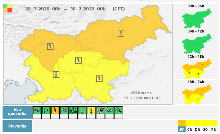 Državni meteorologi svarijo pred krajevnimi neurji ter naraščanjem in razlivanjem vodotokov.