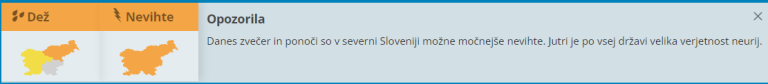 Agencija Republike Slovenije za okolje je zaradi možnih močnejših neviht zvečer in ponoči za sever Slovenije izdala oranžno opozorilo, jutri pa je po vsej državi velika verjetnost neurij.