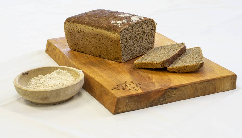 V pirinemu polnozrnatemu kruhu sta pirini polnozrnati moki dodani še ajdova in konopljina moka.