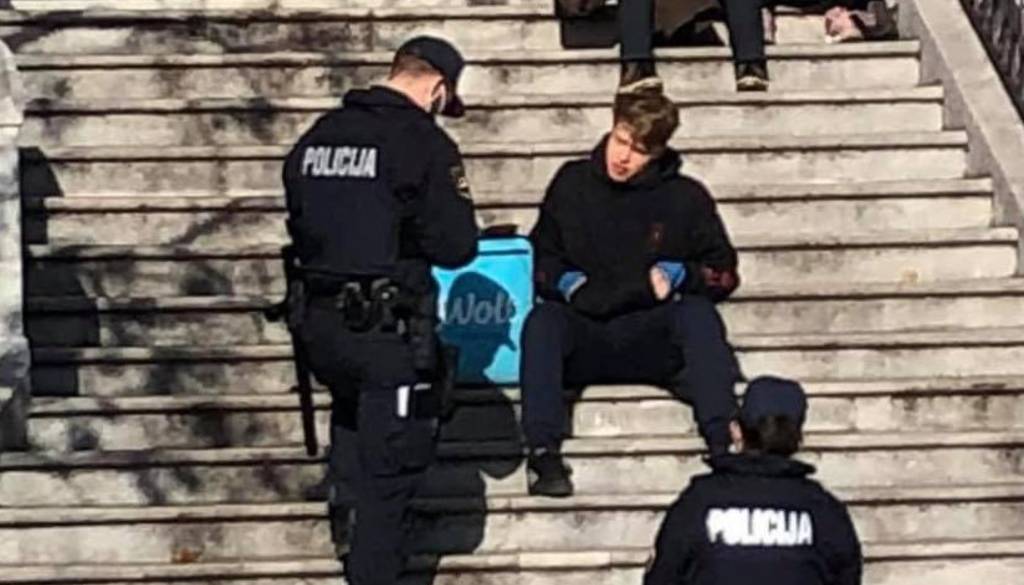Po spletnih družbenih omrežjih je zaokrožila fotografija policistov, ki kaznujeta dostavljalca hrane. Zakaj? Ker si je na javnem prostoru privoščil malico.