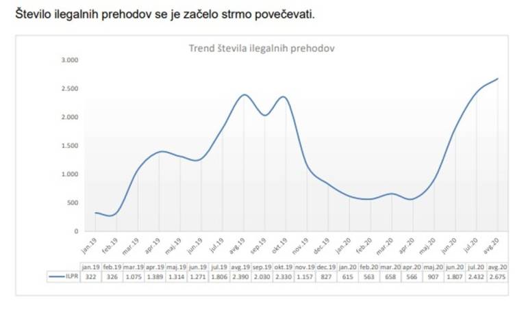 V prvih osmih mesecih letošnjega leta so policisti obravnavali že 10.163 oseb, ki so nezakonito prestopile državno mejo. To je največ v zadnjih devetnajstih letih. Za primerjavo: v enakem obdobju lani so policisti obravnavali 9.896 nezakonitih prehodov državne meje.