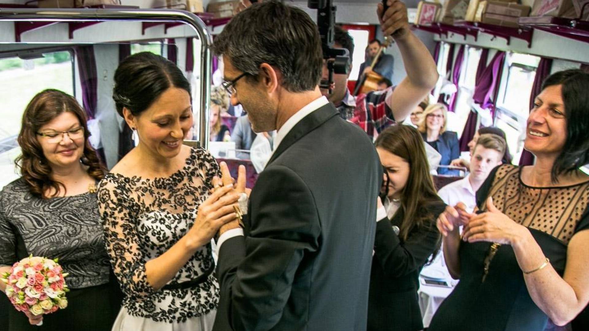 Ženin je pred odhodom na vlak povedal, da sta se odločila za poroko na vlaku, ker je nevesta iz Maribora, on pa iz Ljubljane, s poroko na vlaku pa sta se tako poročila na polovici poti med obema krajema.