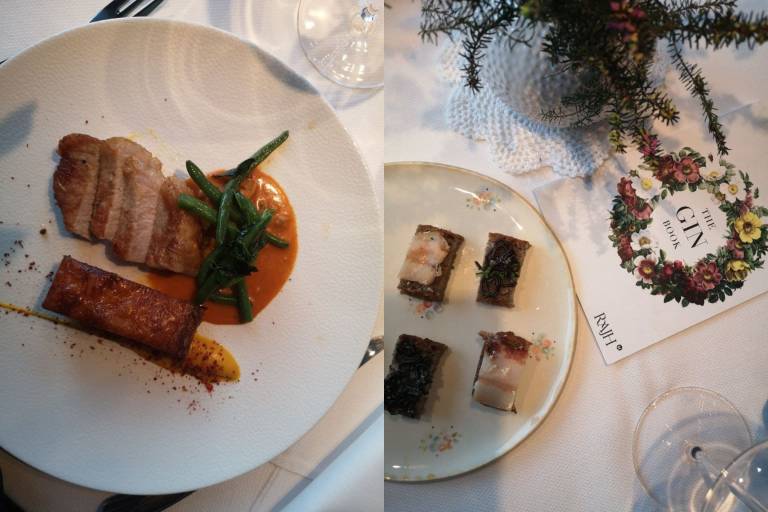 Tako namesto vode žejo poteši bezgov sok z ingverjem. Pravijo, da je z domačega gostilniškega vrta. Predjed zaznamuje buča - olje, pire, z dodatkom soli in cvetlic. Naslednji krožnik je svetlih barv. Zelenjava, riba, kaviar celotno izkušnjo povzdignejo.