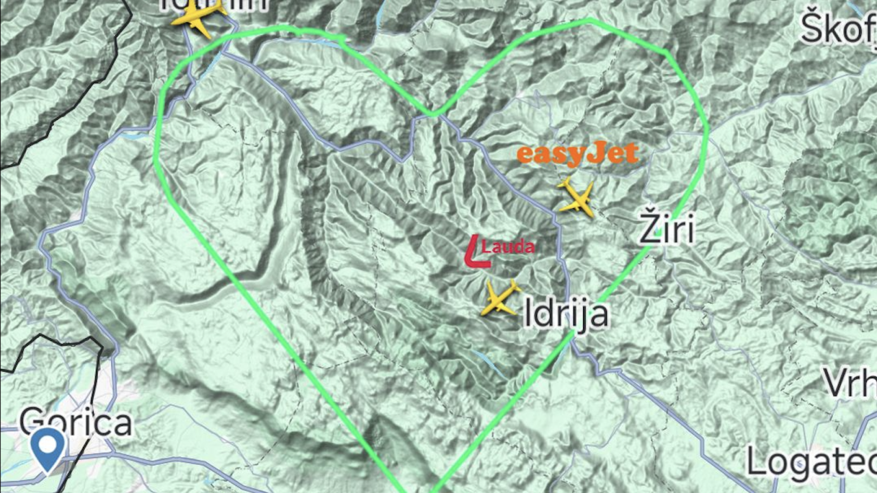 Uporabniki aplikacije Flightradar24 so opazili nekaj prav posebnega - letalo je med letom nad Slovenijo na nebu izrisalo obliko srca, kar je marsikomu polepšalo dan.