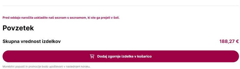 Pri enem ponudniku bi za nakup po seznamu odšteli nekaj več kot 188 evrov, pri drugem pa kar 46 evrov več.