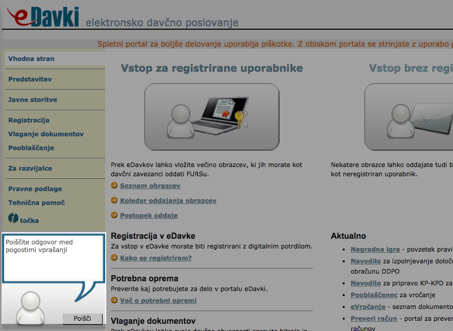 Odpravite se na spletno strani https://edavki.durs.si kjer v spodnjem levem kotu v okvirček z vsebino "Poiščite odgovor med pogostimi vprašanji" vpišete svojo davčno številko ter kliknete gumb "Poišči".
