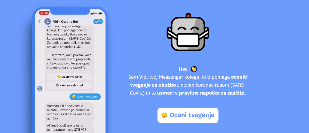 Izpod rok slovenskih ustvarjalcev je nastal Vid - Corona bot, ki omogoča oceno tveganja za okužbo z novim koronavirusom, podaja pa tudi pomembne informacije in napotke na podlagi strokovnih smernic.
