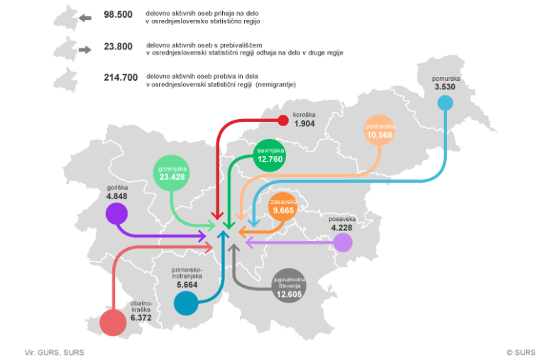 Osrednjeslovenska statistična regija je v zadnjih štirih letih imela edina več delovnih mest kot delovno aktivnih prebivalcev, in sicer jih je imela za 31,4 odstotka več.