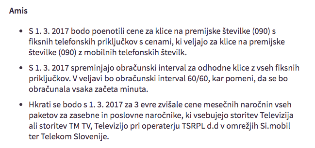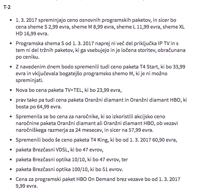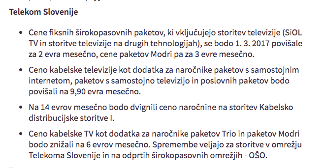 Tudi največji operaterji so sporočili, da s 1. marcem 2017 prav zaradi Pro Plusa dvigujejo ceno svojih storitev. Edina izjema je (za enkrat) Telemach.