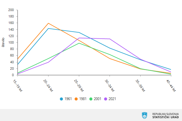 Največ, 138 otrok, je rodilo 1000 žensk, starih 29 let. Tako veliko otrok je nazadnje rodilo 1000 žensk v starosti 22 let, in sicer leta 1989. V letu 2021 je bila skoraj polovica rojenih otrok prvorojencev, 39 odstotkov pa drugorojencev.