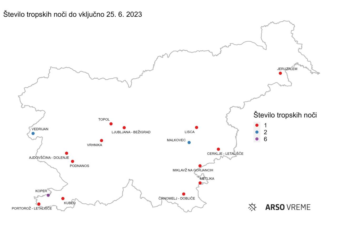 »Tudi tukaj smo največ takšnih noči zabeležili v Kopru, do sedaj že šest,« pojasnjujejo: »Je pa zanimivo, da smo tropsko noč zabeležili na Lisci, torej na nadmorski višini malo pod 1000 metrov nadmorske višine.«