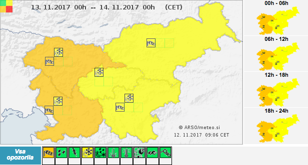 Ta ponedeljek bo udarila zima. Poleg snega prihaja tudi okrepljen severni veter. Agencija Republike Slovenije za okolje je izdala oranžen alarm.