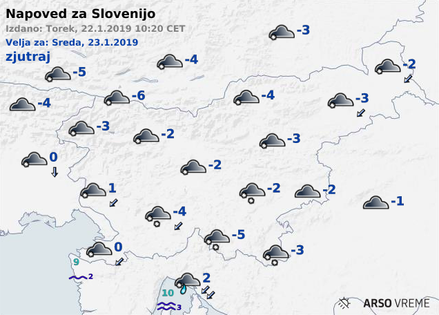 Čez dan bo večinoma snežilo le v jugovzhodnem delu države, ponoči pa se bo sneženje okrepilo in zajelo celo državo. V sredo se bo sneženje čez dan umirilo. Občasno bodo snežinke naletavale le še na Notranjskem, ob morju pa bo sneg prešel v dež, še dodajajo na Agenciji Republike Slovenije za okolje.