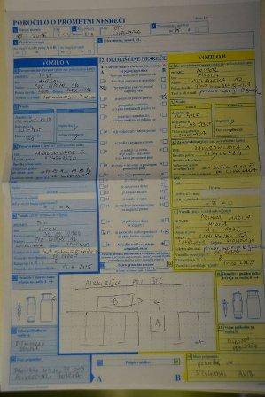 Če nimate evropskega poročila, naredite opis poškodbe s skico na drug papir, ki je pri roki, oba udeleženca pa naj to podpišita.
