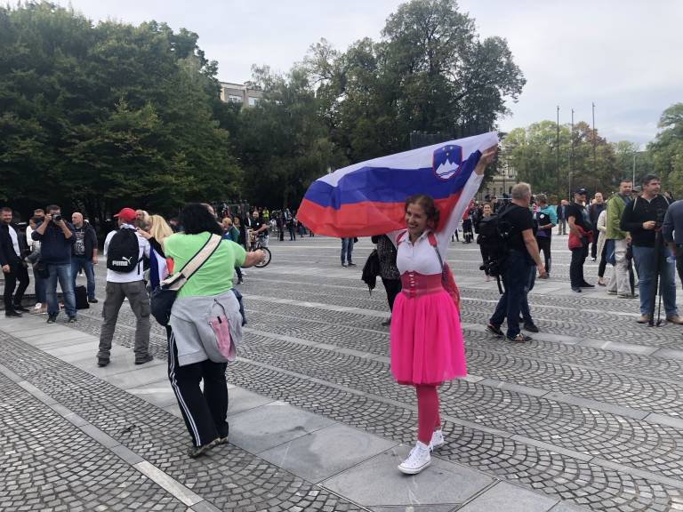 14.40 - Na Trg republike začenjajo prihajati protestniki, ki so odeti v slovensko zastavo.