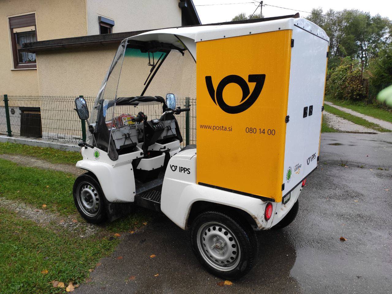 Trenutno slovenski poštarji uporabljajo 50 lahkih dostavnih vozil na električni pogon, 57 lahkih električnih štirikolesnikov, 12 električnih trikolesnikov ter več kot 70 različnih električnih dvokoles.