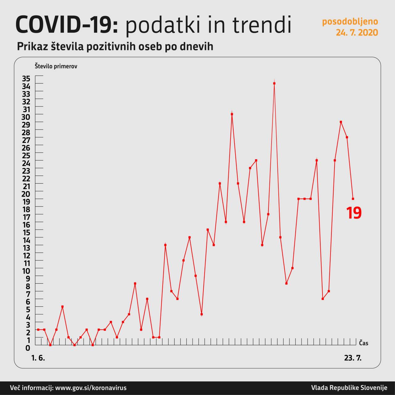 V Sloveniji so včeraj opravili 848 testiranj na novi koronavirus. Potrdili so 19 novih okužb. Za primerjavo: dan prej je število novih okužb znašalo 27.