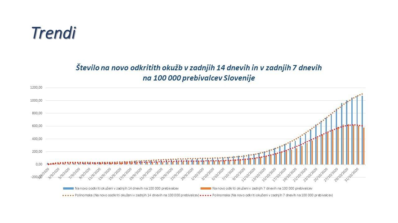 Kacin je uvodoma predstavil nove podatke obolelosti z novim koronavirusom. V zadnjem dnevu smo ob 4587 testih potrdili 1176 novih okužb, delež pozitivnih je pri tem 25,6-odstoten. V bolnišnicah je zaradi koronavirusa trenutno hospitaliziranih 925 pacientov, 146 jih je na intenzivni enoti. Iz bolnišnice je bilo včeraj odpuščenih 57 oseb, 24 oseb pa je zaradi bolezni umrlo. Skupno število umrlih danes znaša že 212.
