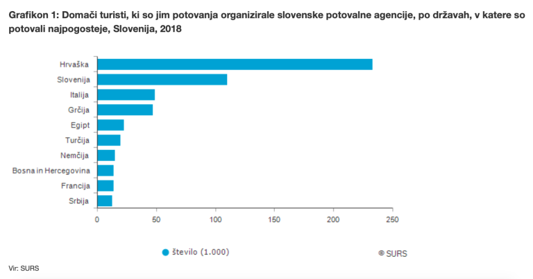 Slovenske potovalne agencije so v letu 2018 organizirale potovanja za 686.000 domačih turistov in za 336.000 domačih izletnikov.