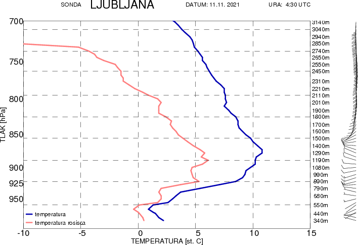 Na Kredarici je bilo tako ob 6. uri zjutraj pet stopinj Celzija, medtem ko so termometri v Ljubljani, ob istem času, izmerili le tri stopinje Celzija.