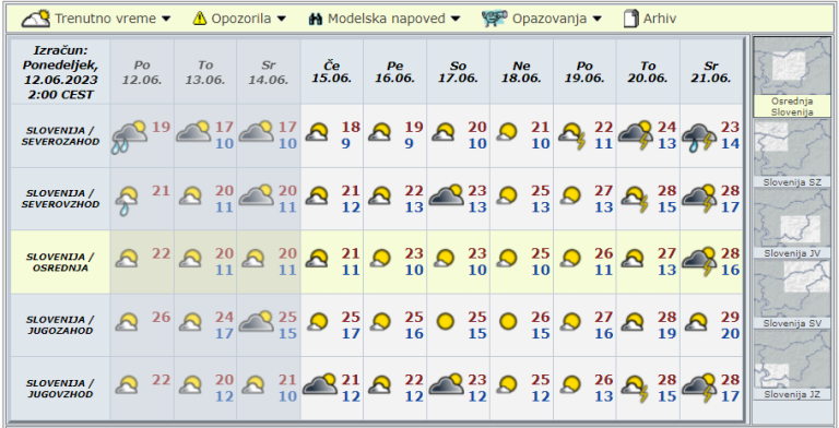 Obetavnejša je tudi modelska napoved Agencije za okolje za naslednjih deset dni, ki kaže, da bo po celotni Sloveniji pretežno oblačno, nevihte pa (za zdaj) niso napovedane.