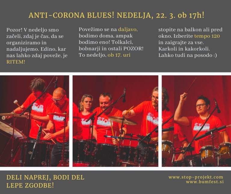 Dejan Tamše, tolkalec eden od pobudnikov za petje in muziciranje z balkonov, pravi: »Glasbeniki za svoje ustvarjanje potrebujemo oder, ki ga zdaj, ko smo 'priklenjeni' na domove, pogrešamo. Igranje na domačih balkonih in ob oknih pa ima v okoliščinah, v katerih smo se znašli, pomembno čustveno dimenzijo in lahko vsaj za nekaj trenutkov preusmeri misli, ki so v teh dneh osredotočene na razmere, povezane s koronavirusom. Do prihajajoče nedelje, ko bomo s skupnim petjem in igranjem nadaljevali, pa smo si tolkalci v bližini zadali smernice, da bomo igrali enak tempo. Če se že ne moremo družiti, bomo vsaj povezani v enakem tempu.«