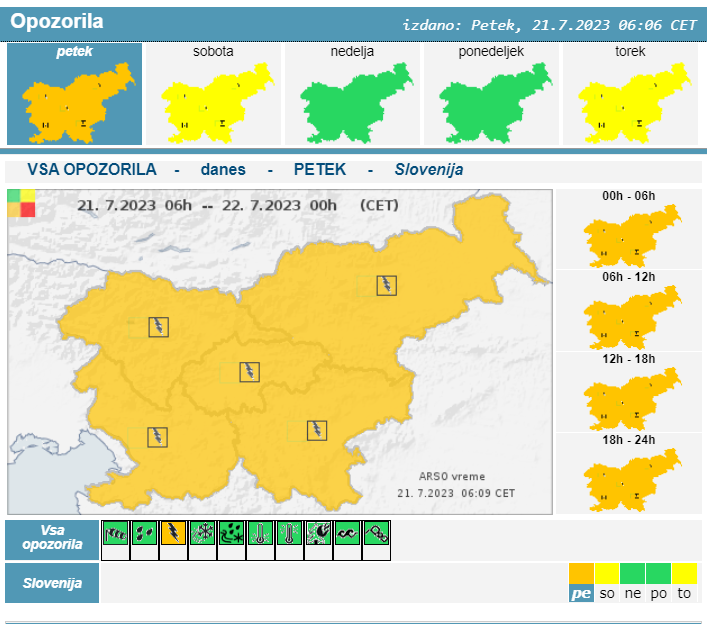 Agencija za okolje je sicer za območje celotne Slovenije za ves današnji dan izdala oranžno opozorilo.