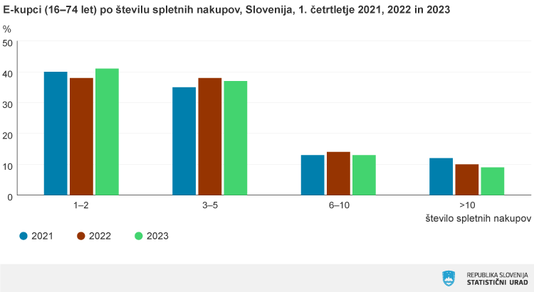 »V primerjavi z letom 2021, ko je bila razglašena epidemija covida-19, sta se deleža spletnega nakupovanja v zadnjih 3 mesecih oziroma 12 mesecih pred anketiranjem zmanjšala za šest oziroma pet odstotnih točk.«
