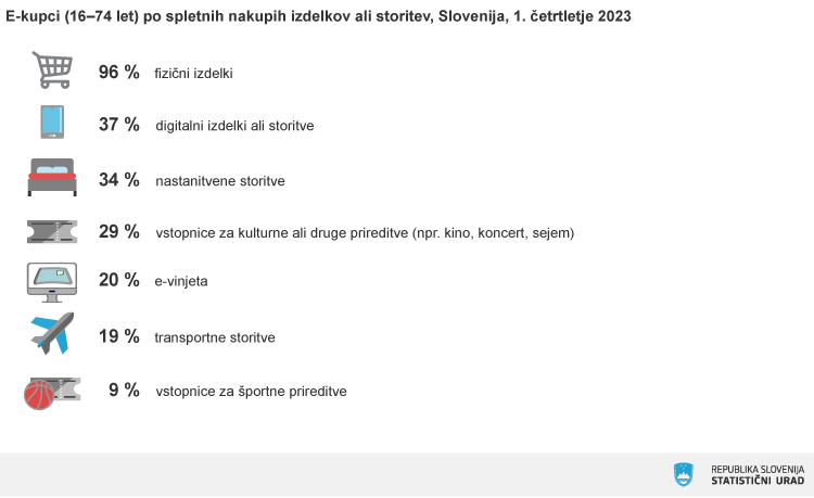 »81 odstotkov jih je fizične izdelke kupilo ali naročilo prek spleta pri prodajalcih iz Slovenije, polovica pa pri ponudnikih iz drugih držav članic Evropske unije.«